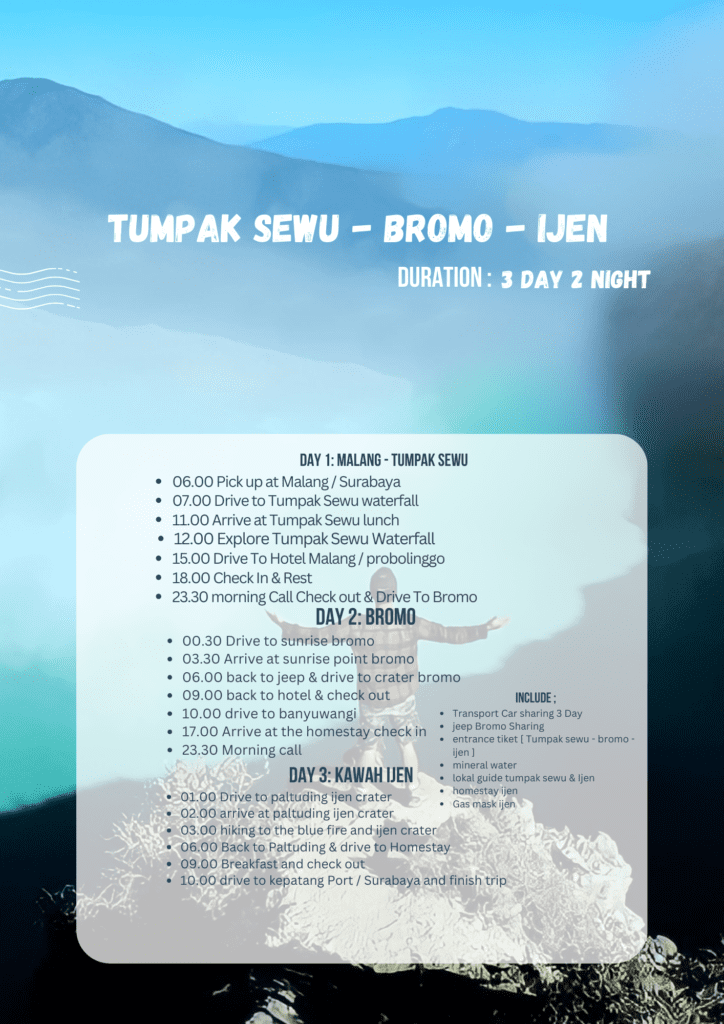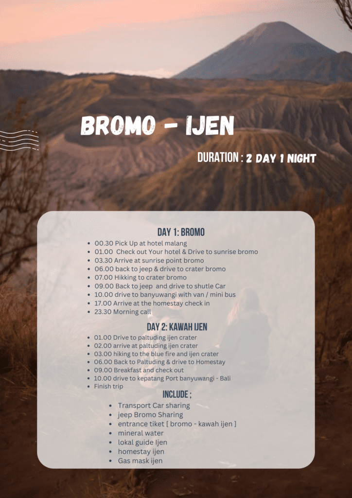 – Expertly Designed Tours: Our tours are meticulously crafted to ensure you experience the best of Mount Bromo. From sunrise excursions to crater explorations, every aspect of our tours is designed to maximize your enjoyment and immersion in this extraordinary destination.